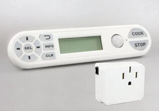 Cook Stop is available for plug-in stoves as well as wire in stoves. It includes a control panel with built in motion sensor, connecting wire, and an appliance switch. CookStop is constantly monitoring motion in the kitchen. By default it will automatically shut the stove off 5 minutes after the last time motion was detected near the control panel which is installed at the stove.